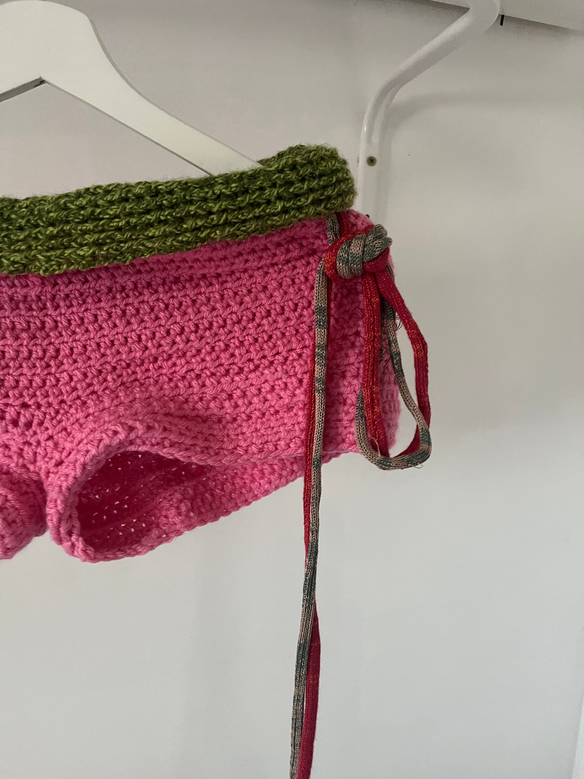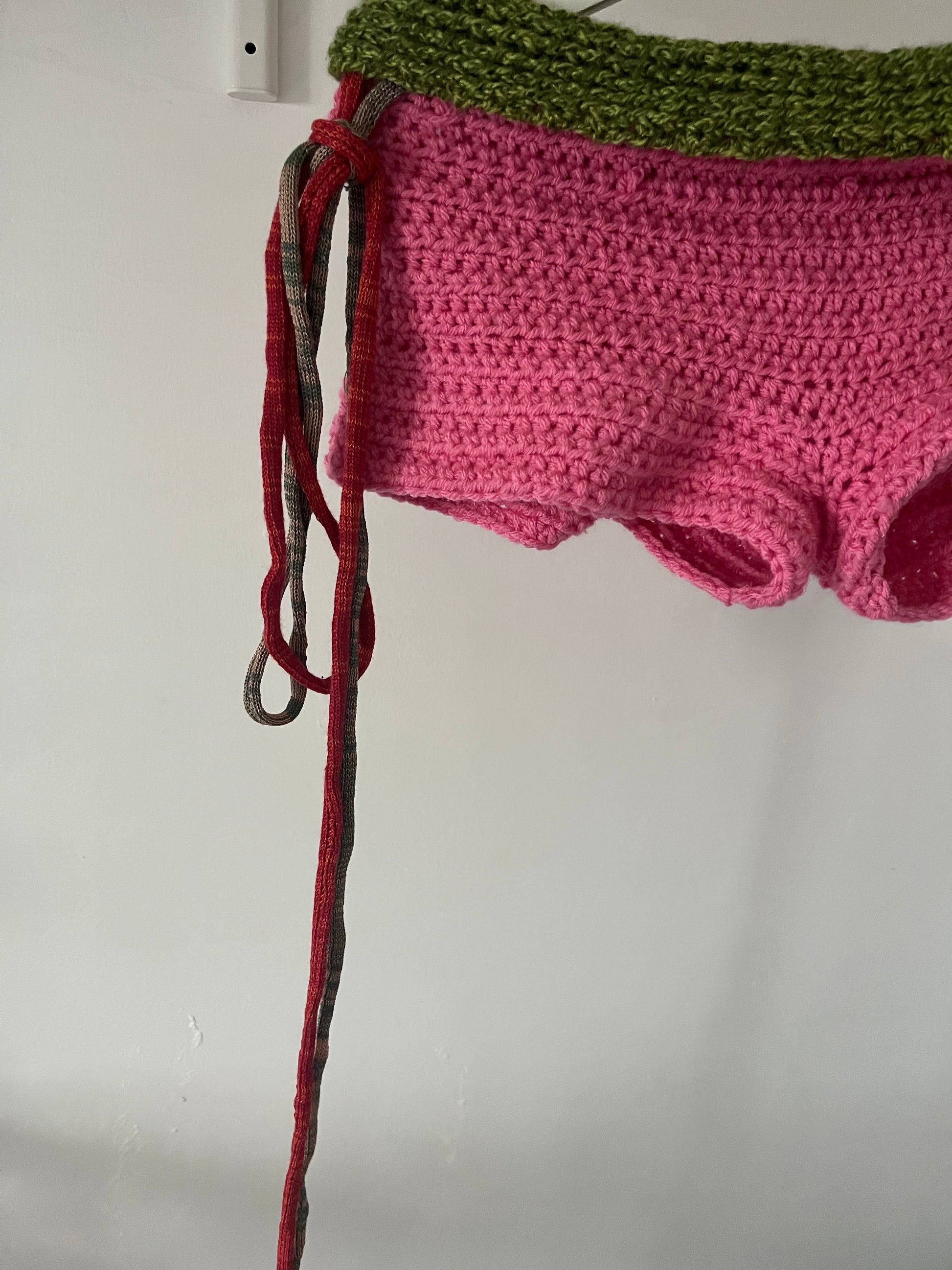 Get ready to show off those sweet cheeks with our Short & Sweet booty shorts! These pink shorts feature a unique green fold over waist band with adjustable ties, making them perfect for any occasion. Dress them up or down, they're versatile and flattering no matter how you wear them!